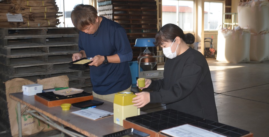 10.30大豆初検査(南条大豆乾燥調製施設)