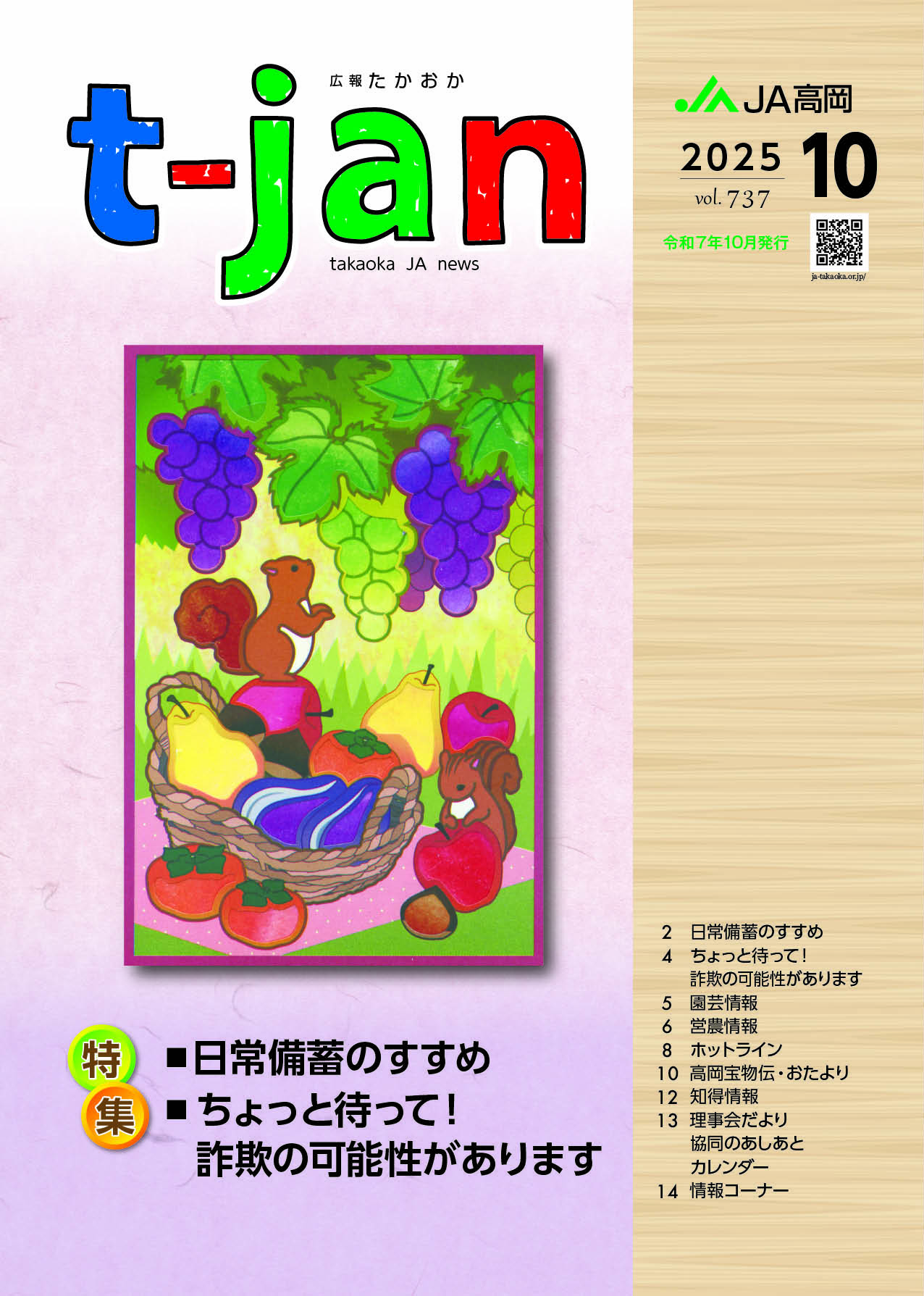 t-jan(ティージャン)は、食と地域貢献を大切にするJA高岡の情報誌です。